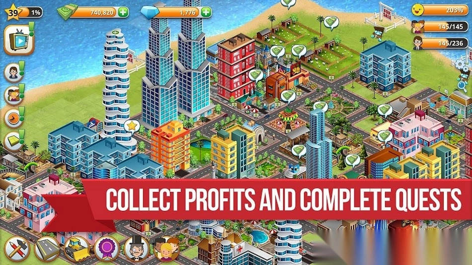 2、这款游戏的玩法相当有趣,玩家在完成形形色色任务的过程中,不仅能够领略到经营城市所独具的魅力,同时还能锻炼自身的策略思维能力。