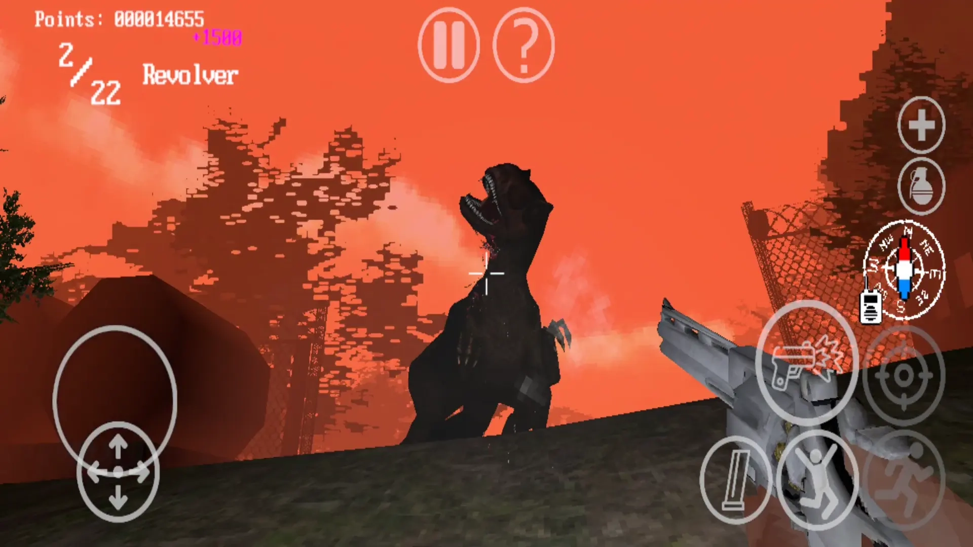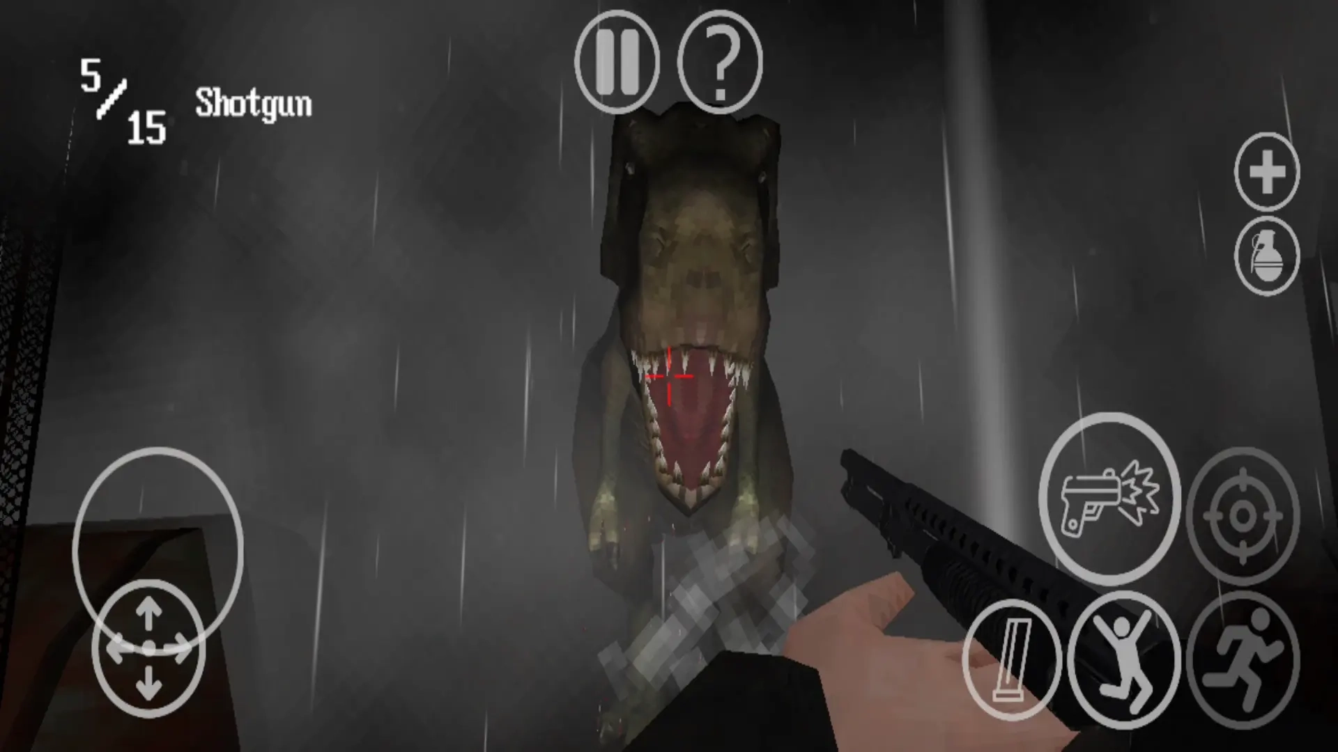 4、咱们随机开启,你得赶紧撤离,不然恐龙就会发动攻击。右上角的三角形图标能够用来切换武器。