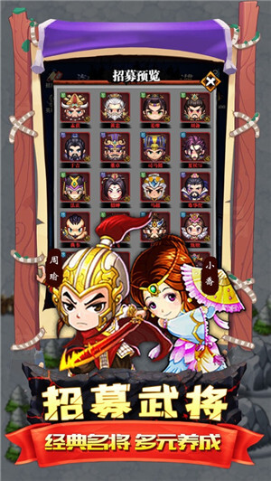 在这款游戏里,诸多经典的三国战役将会一一重现。游戏采用Q版风格打造,玩家在体验热血战斗氛围的同时,不会感受到血腥。这里有着大量三国人物,等待玩家去进行搭配组合。玩家还能够收集丰富多样的道具与资源,助力自身提升战斗能力。这款游戏对玩家的战略能力有着较高的考验。