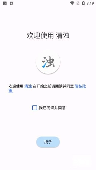 1、首次使用清浊清理软件时,要给授予权限才可进行到下一步。