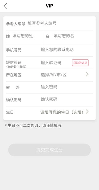 4、完成后就会进入到【vip资料填写】页面,除了生日信息,其他都为必填项。