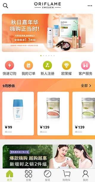 全新的首页可依据用户属性,展示定制化的版块内容。无论是快捷入口、当月折扣,还是奖励计划,都通过对每一项信息进行精准把控与设计,更高效地向用户呈现丰富内容。新品上市专题推荐采用了多元化内容与商品购物车相结合的形式,激励顾问开展探索性购物、获取知识,或是分享事业发展经验。