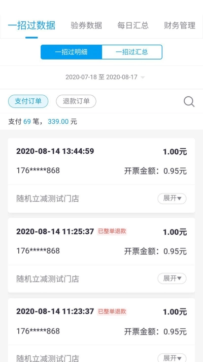 3、提供优惠券验证数据、一招过买单数据以及财务拨款数据的统计查询功能,以便利财务进行对账工作。