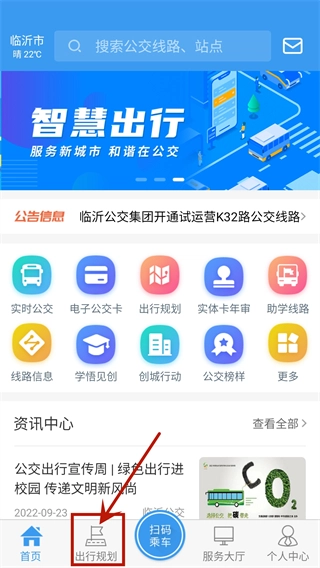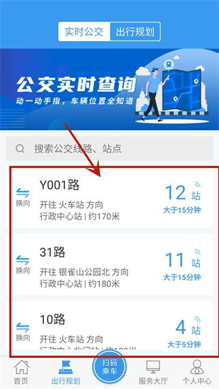 2. 在出行规划界面,能够查看当前位置的实时公交资讯。