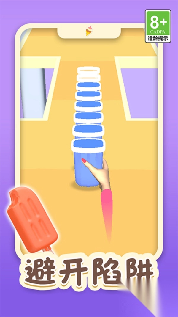 1. 仅需滑动屏幕来移动杯子,接住各种不同口味的冰淇淋球就能得分。