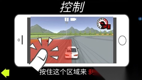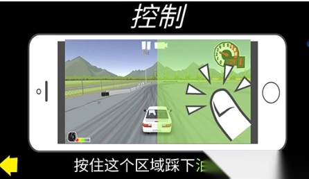 1、按住屏幕右方指定区域,可加速前进,踩下油门。