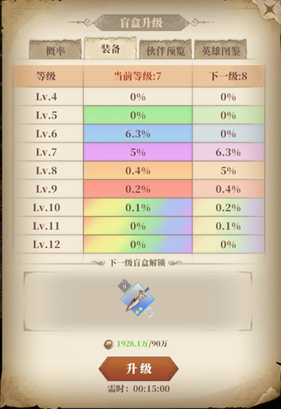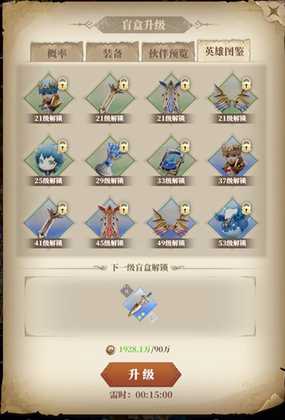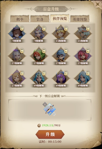 奇妙盲盒是提升战力的基础要素之一,而盲盒的等级同样至关重要。每次开启奇妙盲盒,都能获取盲盒经验。盲盒等级不仅决定了产出装备的等级上限,而且随着盲盒等级逐步提升,还能够解锁更多的伙伴以及英雄装束。