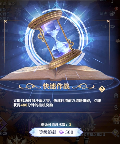 每次进行快速作战,都能即刻获取480分钟的挂机收益,同时还可得到120分钟的星座增益效果。