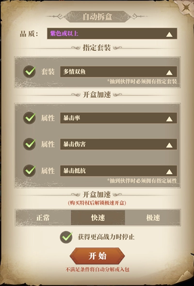 借助对盲盒产出的套装属性、开盒速度等方面的筛选,便能自动开展拆盲盒操作,显著减轻了冒险者的操作负担。