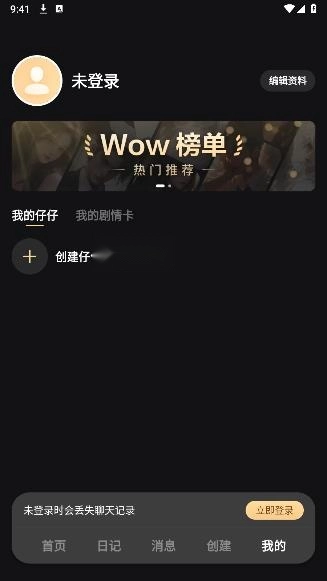 我的界面可以创建仔仔,查看剧情卡