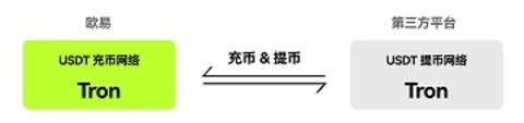 务必保证所选的充币网络和其他交易所或钱包的【提币/提现网络】保持一致,比如均为 USDT - TRON(TRC20) ,防止出现币丢失的情况。