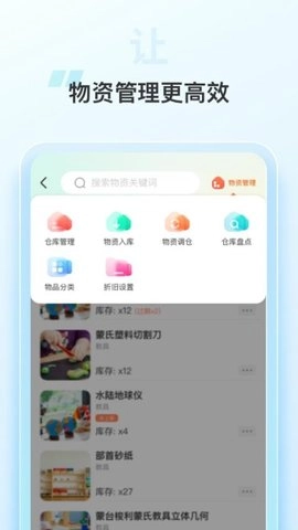3、用户能够随时查看各类物资的库存状况,及时补齐缺货物品,防止因物资短缺对日常教学造成影响。