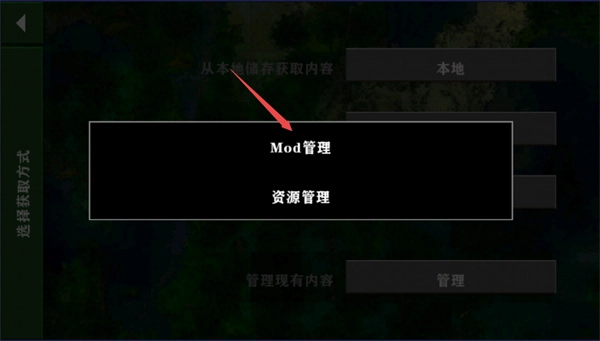 2、选择mod管理,