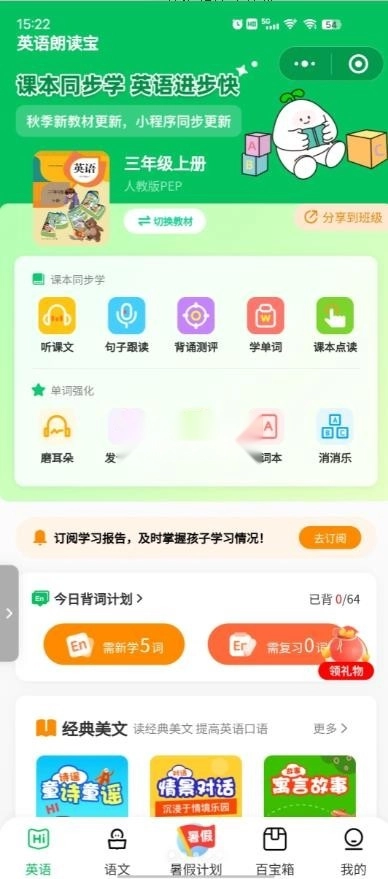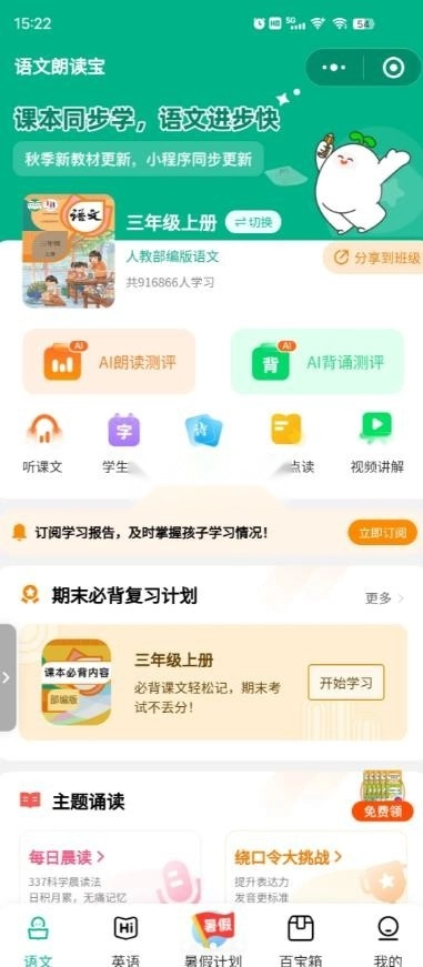 可以进行不同年级的点读朗读跟读