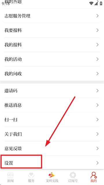 在我的界面向下滑动,直至页面底部,然后选择设置。