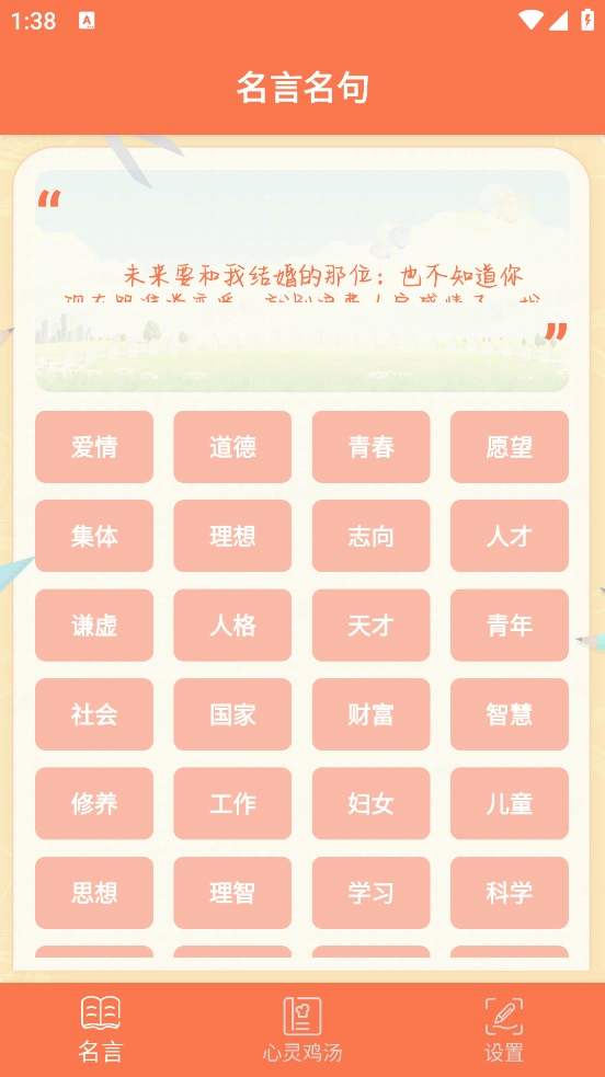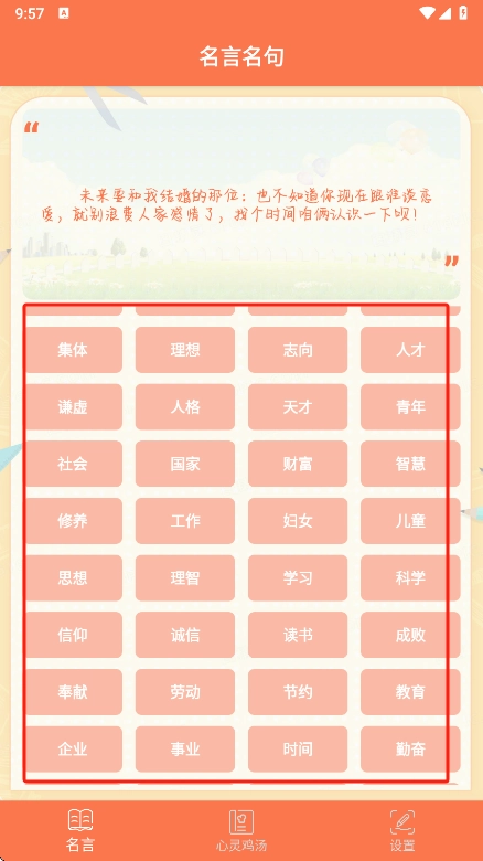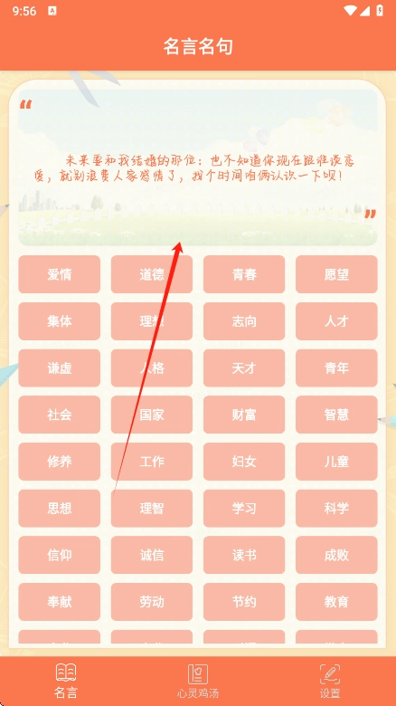 1、本软件打开,可以看到软件为用户每日推荐的名言名句