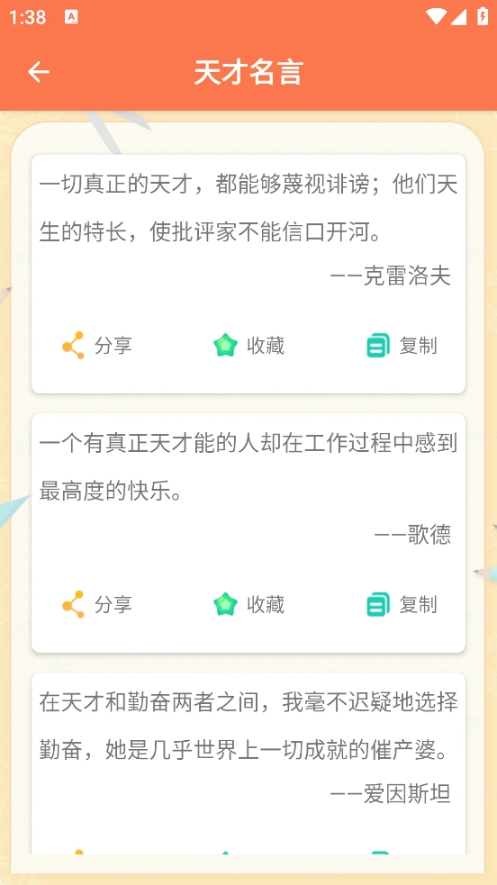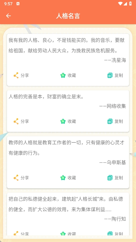 3、点击进入后,能查阅到相关名言,还可进行分享、收藏和复制操作。