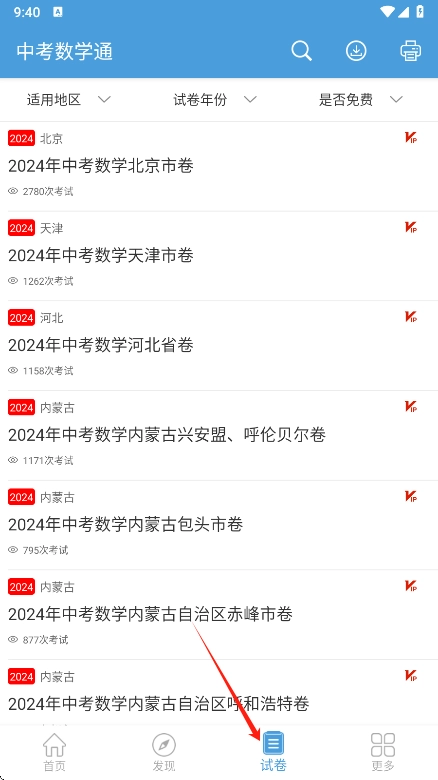 5、试卷板块里有各个地区的历年真题