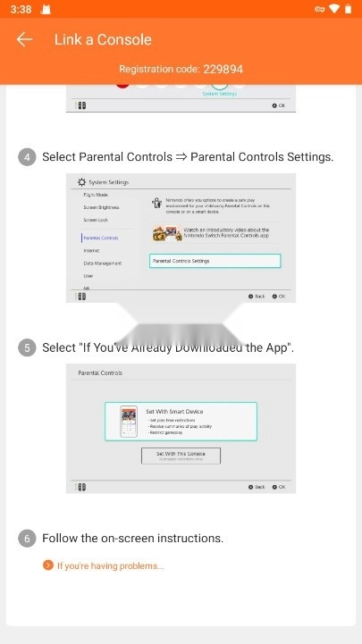 4. 开启Nintendo Switch主机,当出现相应屏幕时,按下HOME按钮进入主菜单。在主菜单里,选择“设置(System Settings)”-“家长控制设置(Parental Controls设置)”,打开“Parental Controls设置(监护人实施的使用限制)” ,按A键选择“已的用户,请前往下一步” ,接着依照屏幕说明逐步操作,输入switch家长控制中刚刚显示的那串6位数字代码,就能设置具体的游玩时长、游玩时间等。