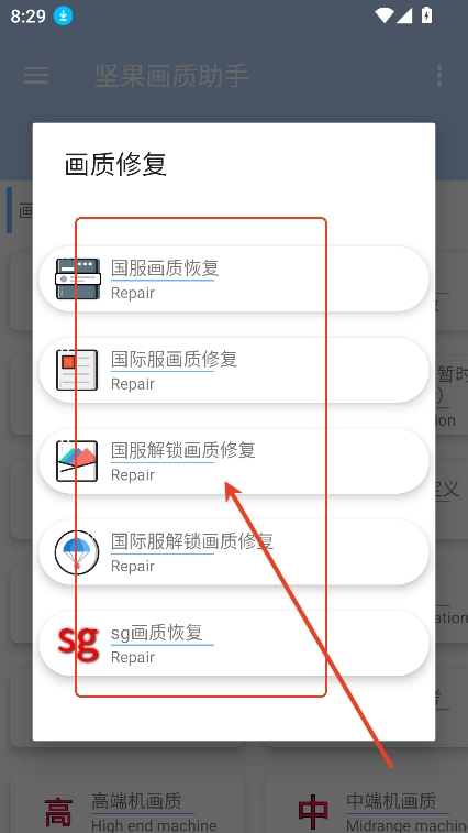 3、比如进入“画质优化”后,能够依据国服、国际服等不同版本的游戏,开展有针对性的画质修复与调整。