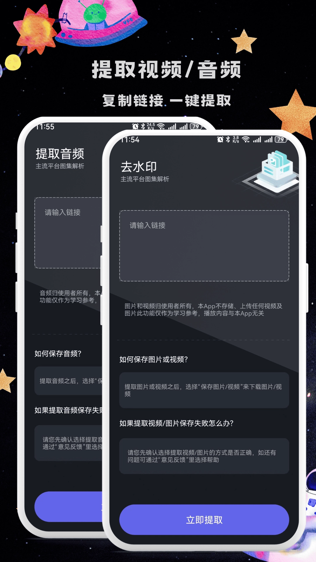 视频制作软件 ,一键提取无水印视频、音频功能。