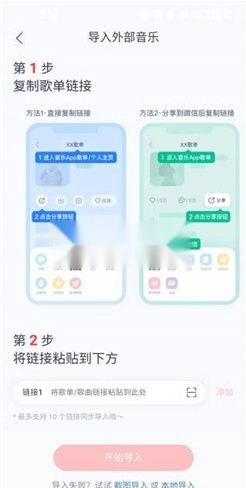 3、在创建歌单的板块向下拉动,找到导入外部音乐的选项。