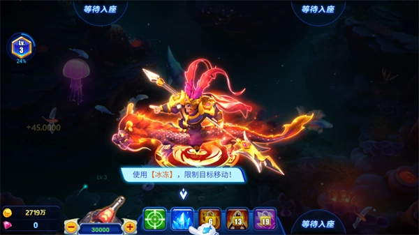 捕鱼时不能只盲目攻击,在关键节点得合理运用技能键。比如白鲨和金鲨,若成功捕获,收获的奖励颇为丰厚。即便你的炮台倍数很高,可要是不借助一些辅助技能键,也不见得就能成功捕到这类大鱼。运用瞄准技能,并搭配高倍炮台,便能助力提升命中率。而使用冰冻键,能让全场鱼类处于冻结状态,此时你移动炮台,锁定目标,就更容易击中了。