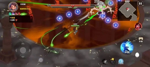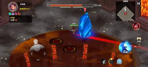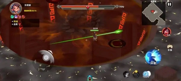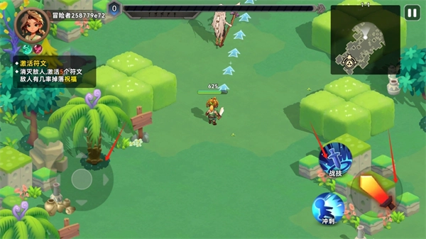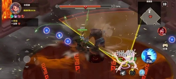 3、把左边的轮盘滑动至敌人身旁,点击右边的攻击按钮与技能,直接行动就好啦。