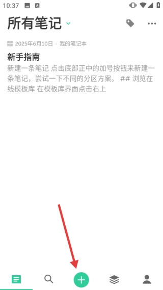 1. 于“所有笔记”页面,轻点底部正中央的【+】按钮,随即进入新建笔记的界面。