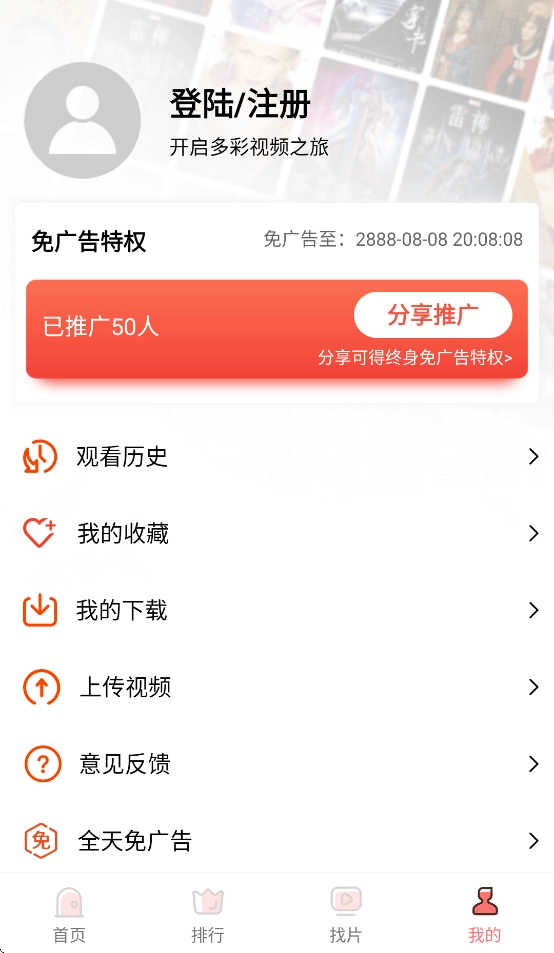 安装并打开多彩视频,进入首页后点击我的