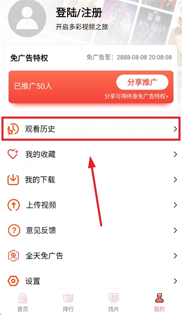 在我的界面点击观看历史