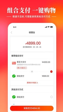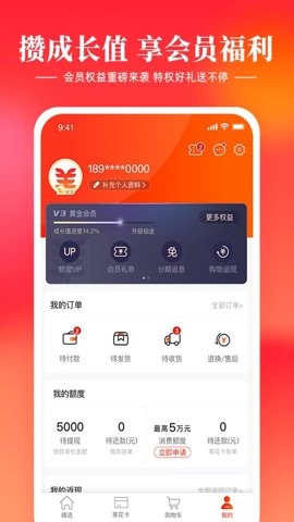 1、消费额度全新登场,开通享花卡就有机会获取5万元购物津贴,能够体验先消费后还款的购物模式。
