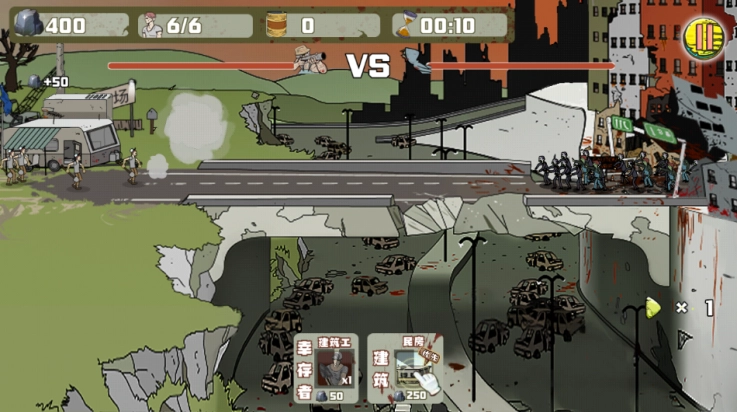 《建筑队大战僵尸(建筑工也疯狂)》的玩法与《植物大战僵尸》滚石头模式有些类似。在游戏设定中,你所处的城市已大面积被僵尸感染,唯有城市另一半的绿坡尚未受到波及。此时,你需要借助建筑工人来抵御蜂拥而至的僵尸群。僵尸会缓缓通过大桥,企图占领你的领地,而你得持续安排建筑工人或其他武装道具,全力守护自己的家园。至于能否坚守到游戏结束,就全看你的策略与操作啦。