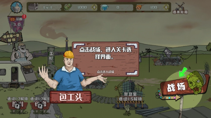 先别理会僵尸,持续点击第二个建筑(金钱站),直至其升至2级(此时基地血量会降至一半以下),接着招募两个工兵(初始兵种,单价50),之后继续点击金钱站,将其升至3级,再招募三个工兵。总之,优先把金钱站升至满级,随后大量派出工兵抵挡怪物,直至攒够钱来升级造价1000的建筑以及花费1500招募机车的建筑。最后,升级造价250的人口站,接着大量招募机车即可。