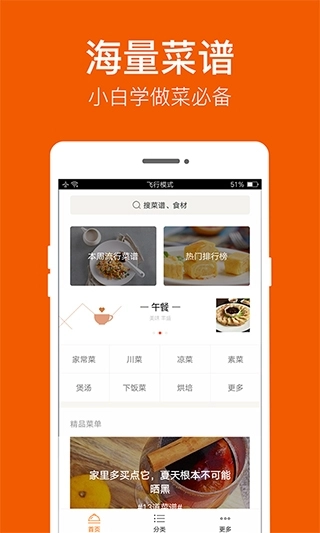1、食谱大全收纳了200余万种菜品,所涉范围包含家常菜、西餐、烘焙等主要类别。并且依据初学者与高级用户的不同需求,对菜单展开智能推荐。