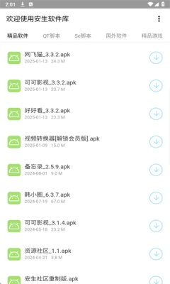 安生软件库是一款极为好用的软件资源集合库。借助这款软件,用户能够便捷地使用丰富多样的资源。这里面的资源极为丰富,涵盖各类影视、游戏、工具等,一应俱全,能充分满足不同用户的喜好。有需要的朋友们,快来试试吧!