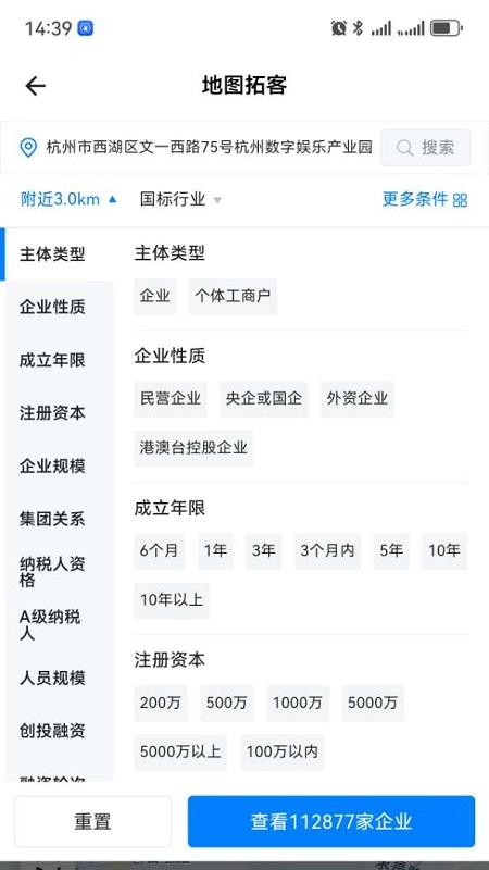 2、接下来分享拓客渠道,你可以依据附近的企业展开筛选,从主体类型、企业性质、成立年限、注册资本等多个角度,找到适配自身的企业单位,然后上门推广。