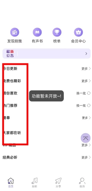 2、平台汇集海量小说及广播剧等音频资源,随时免费收听。