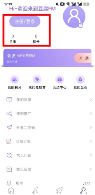 如何在豆腐FM上免费收听广播剧呢? 1. 进入“我的”界面,点击“登录注册”,接着输入个人信息,完成注册流程。