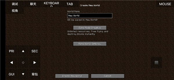 7、进入该界面后,挑选你想要的游戏模式以及设定名称,接着点击下方的“Create New World”。