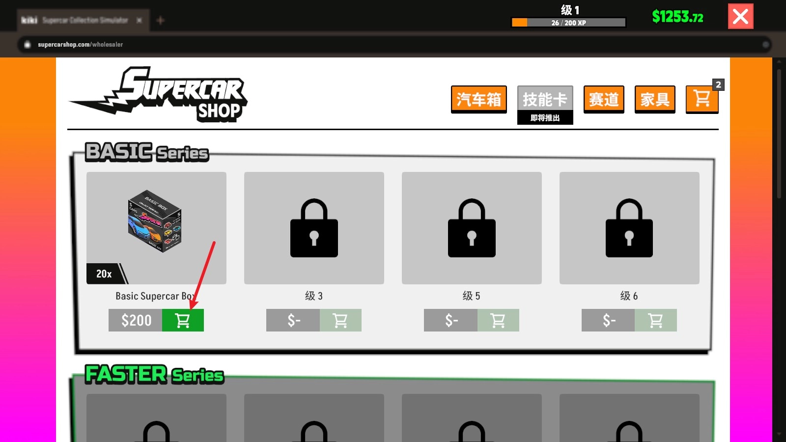 2、接着选择购入汽车盲盒。