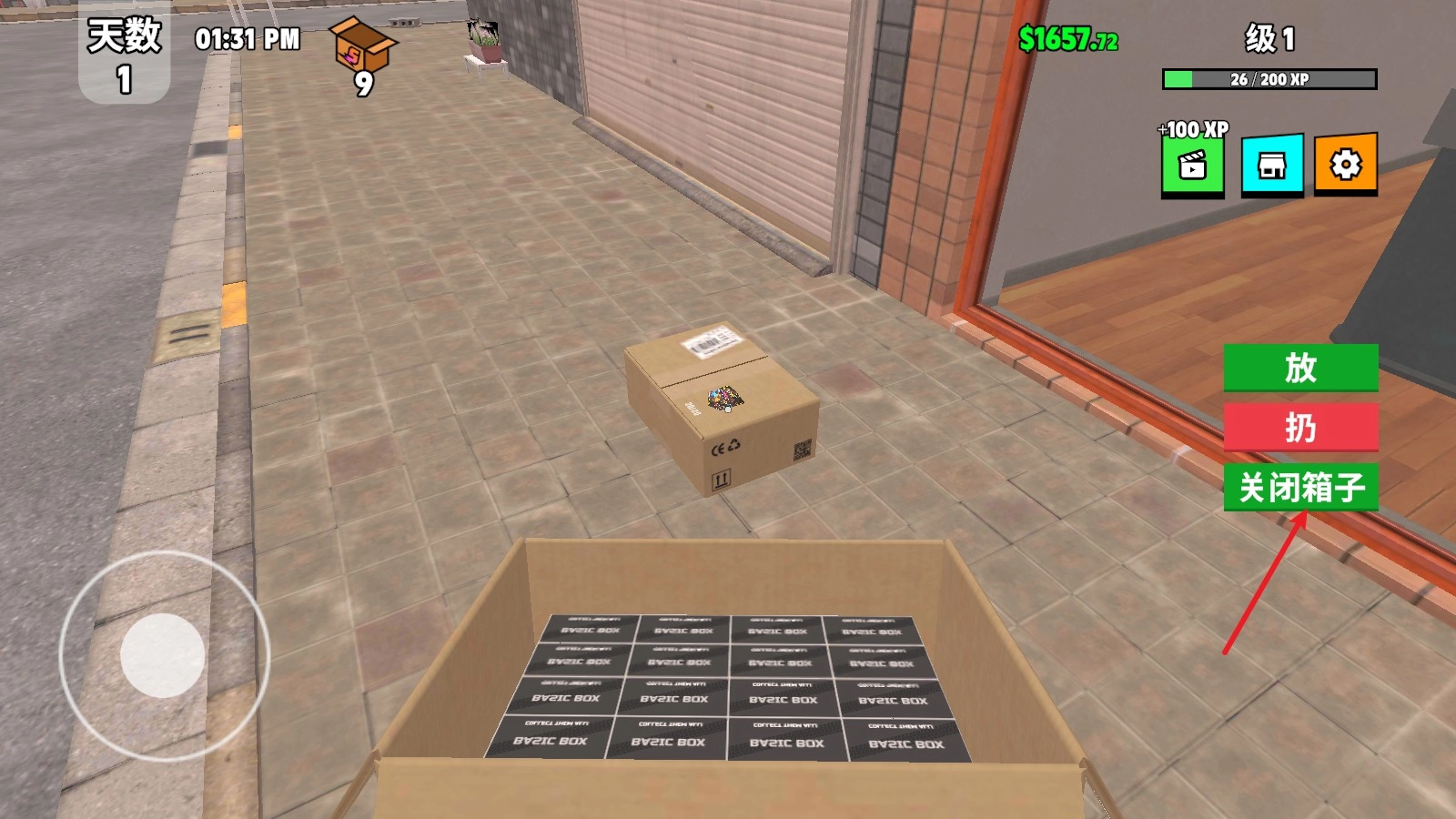 3、稍等片刻,货物就会被运至店门口,待其靠近后,即可拿起,随后点击打开。