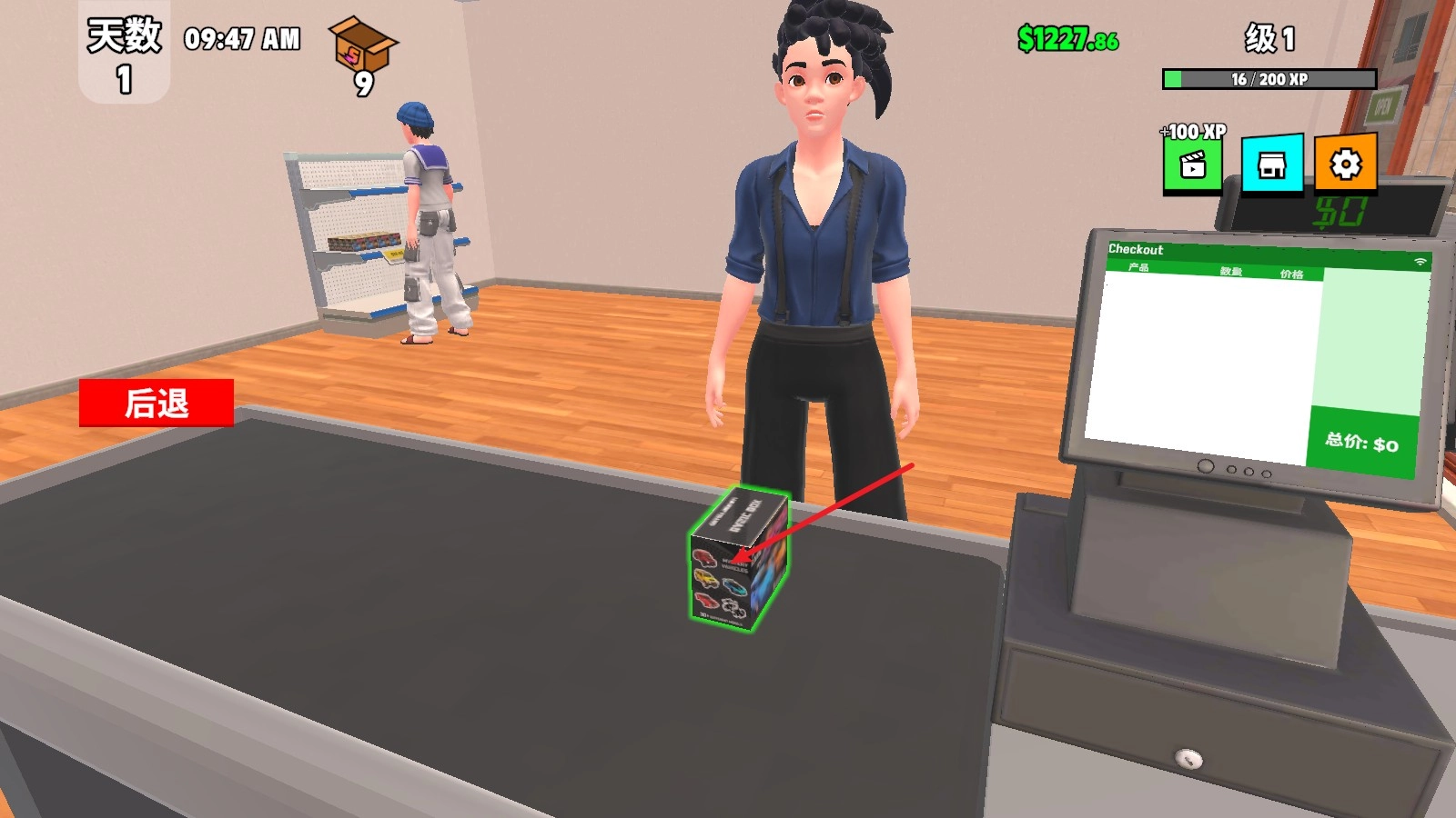 7、当我们来到收银台附近,就能进行收银操作,点击物品便会自动计算价格。