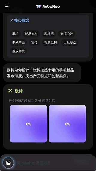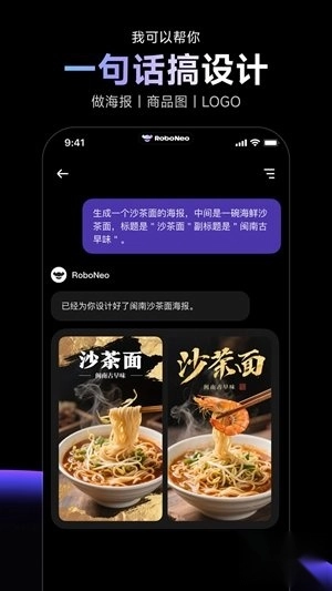 1、当您登录软件,就能直接和AI智能助手展开对话,比如下达文字指令,让它帮您设计一张海报。