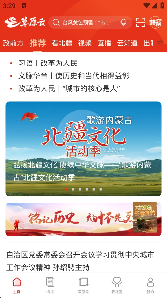 1、草原客户端定位为“新闻+”模式,其功能主要涵盖新闻与服务两大板块。