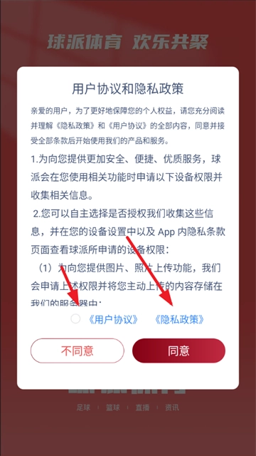 2、勾选用户协议,然后点击同意