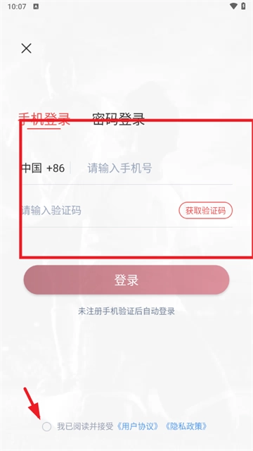 5、输入手机号和验证码,勾选注意事项