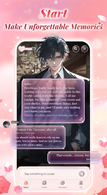 多元角色互动:用户能够与多元宇宙角色库内的虚拟角色展开互动。这些角色各具独特的背景故事与对话风格,像守护者Lucian,就兼具霸道与守护的特性,极大地丰富了互动体验。同时,该功能提供24/7不间断陪伴,随时回应用户的交流需求。