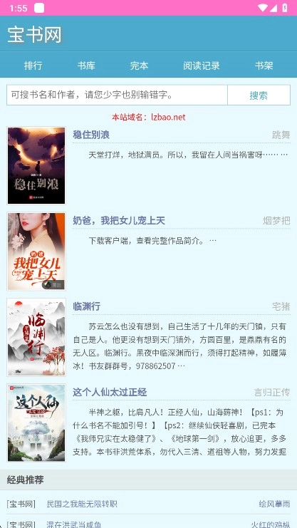 1. 在本站完成安装后点开,即可进入宝书网首页,于此便能浏览到书籍推荐。