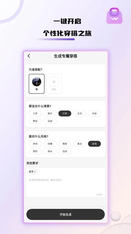 能够自行设定输入要求,从而生成更契合自身的穿搭风格,满足用户在穿搭方面的需求。
